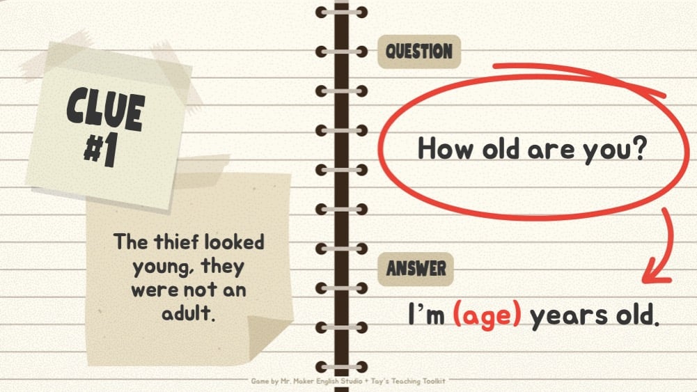 A mystery-filled speaking game where students ask questions, analyze clues, and uncover the thief!