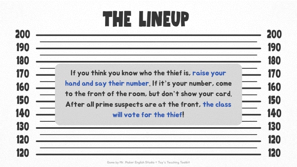 - Once all suspects are lined up, the class votes on who they think the thief is.