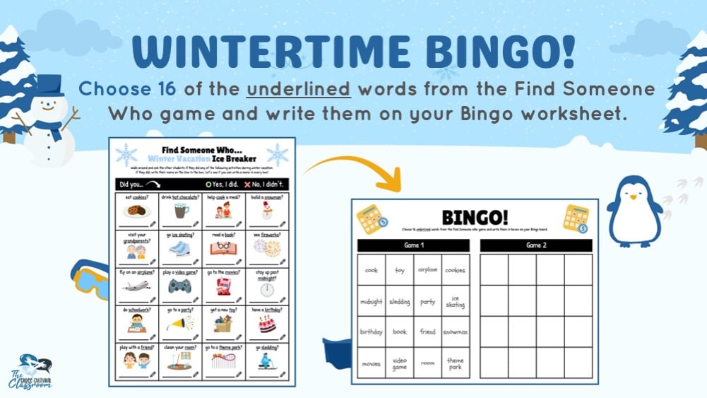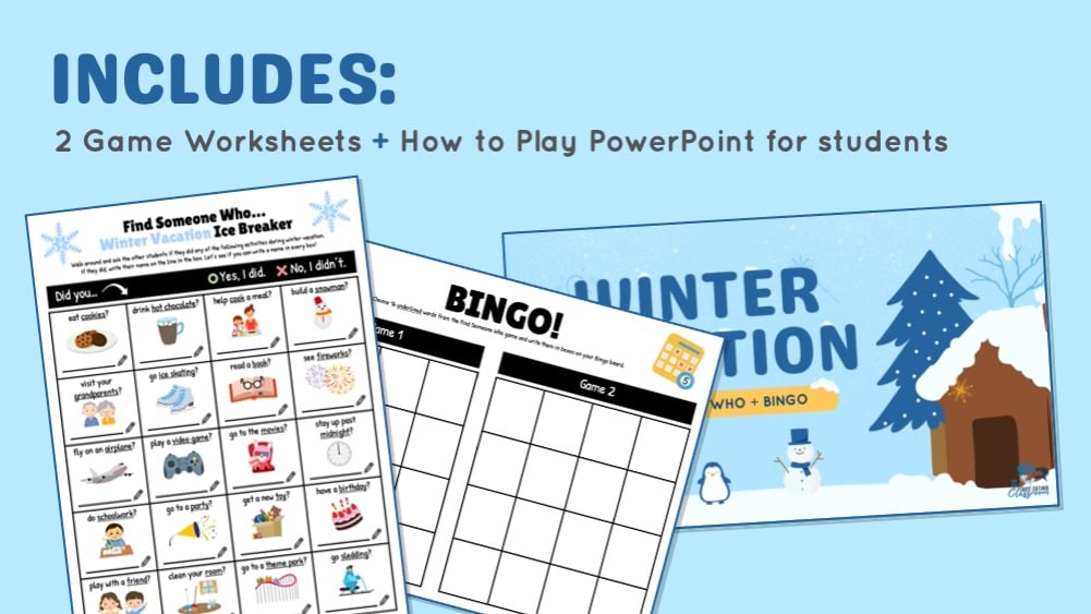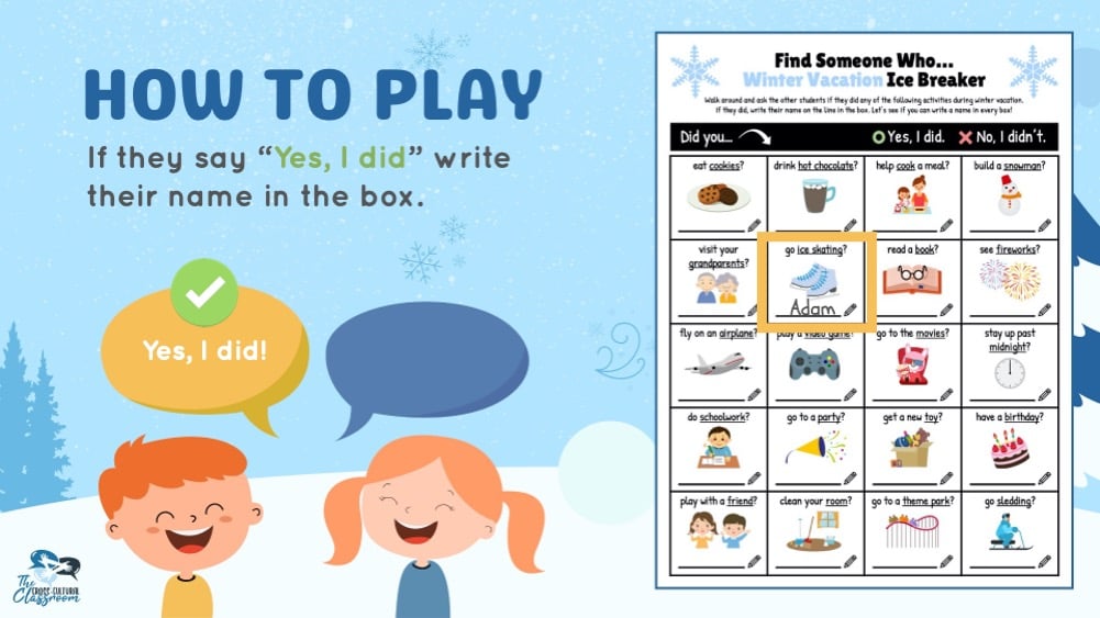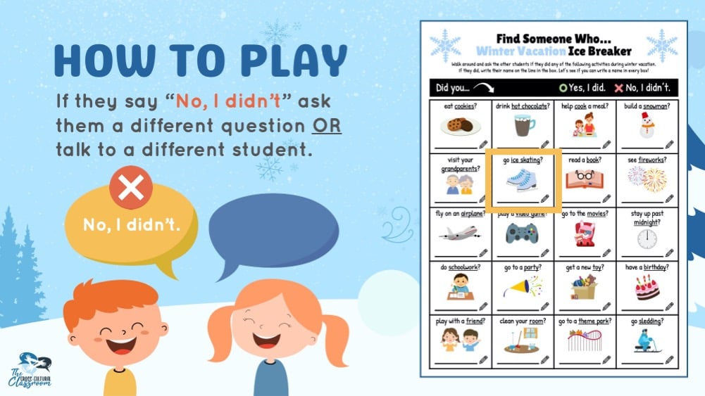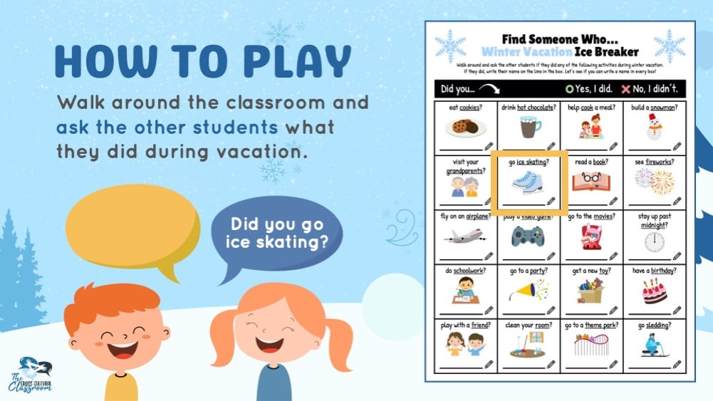 Have your students break-the-ice with these 2-part speaking and writing activities! They're great back-to-school activities after winter vacation to get students comfortable talking to each other about what they did during the break!