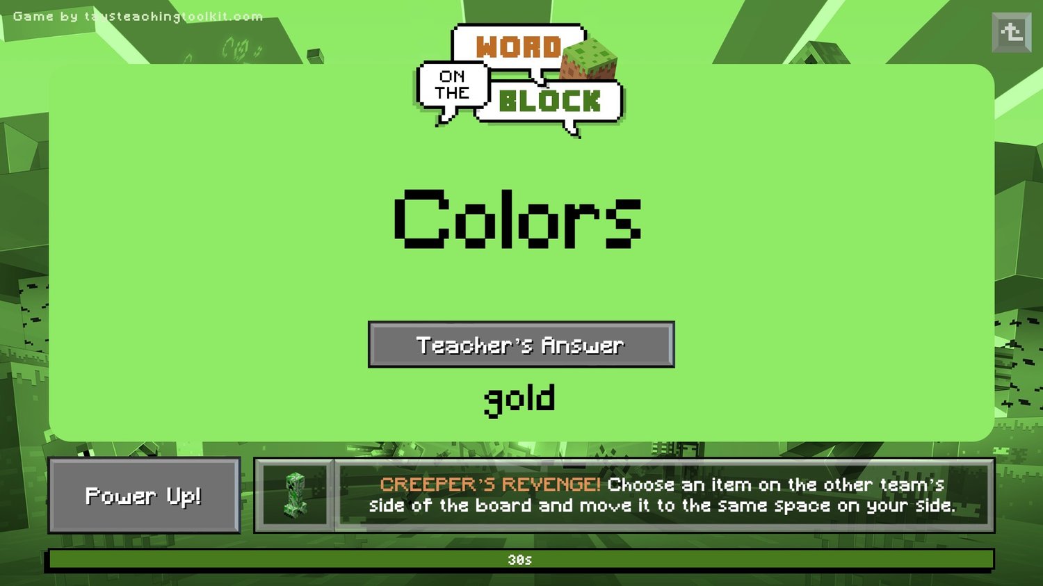 - As a bonus, the teacher also has a secret word. If a team wrote the same word as the teacher, they get a special power up!