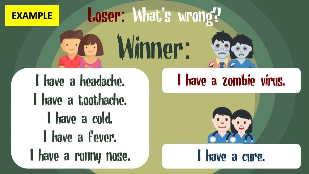 - The instructions above are for the reading version of this game. However, you can also use it as a speaking activity. One way to do this is give each student a card with an image on it relating to the word/sentence they should say as a human, zombie, or doctor.